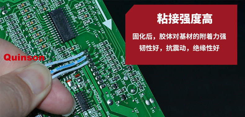 竟誠膠粘劑H803是一款單組份、高透明、通過紫外線照射快速固化的焊點保護UV膠。典型應用于電子產(chǎn)品線束固定、元器件固定、焊點保護等。并且膠液粘度高,還具有一定的觸變性,對施工有很大幫助,非常適合連續(xù)化生產(chǎn)線作業(yè);同時,還具有良好的耐鹽霧性能以及耐濕熱性能 。